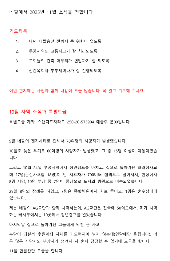 '25년 11월 네팔 문OO 선교사 기도편지 (2)